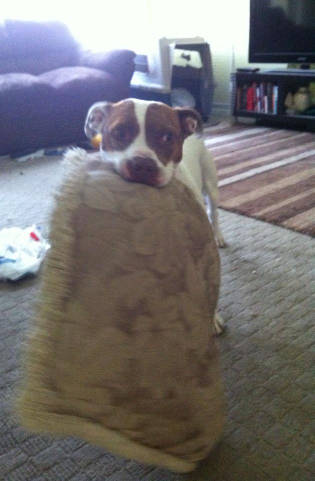 Now that it's getting colder outside, DJ really enjoys spending his evenings cuddled up on the couch with his foster parents. In the warmer months, swimming is one of DJ's FAVOURITE things to do. When he knows the beach is near, he will begin walking faster and faster until he is close enough to launch himself into the water. He will fetch sticks and balls for you as long as you'll let him. In addition to swimming, DJ enjoys sunbathing, rolling in the grass, going for long walks, and playing tug. He has also shown us how much he enjoys playing soccer in our yard and catching those pesky bugs that manage to fly through open windows in the summer. Like most pit bulls, he especially enjoys a good zoomie session.